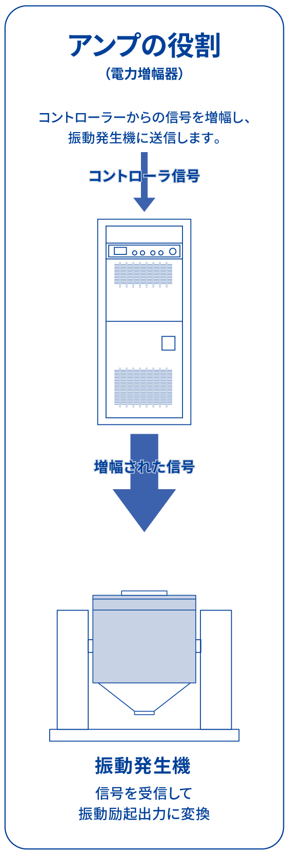 アンプは振動コントローラーからの信号を増幅し、振動発生機に送ります。